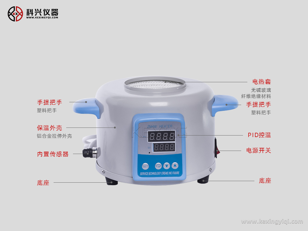 ZNHW型電熱套是用無堿玻璃纖維作絕緣材料,將Cr20Ni80合金絲簧裝置于其中,用硅酸鋁棉經真空定型的半球形保溫體保溫,外殼一次性注塑成型,上蓋采用靜電噴塑工藝,由于采用球形加熱,可使容器受熱面積達到60%以上??販夭捎糜嬎銠C芯片做主控單元,采用多重數字濾波電路,模糊PID控制算法,具有測量精度高,沖溫小,單鍵輕觸操作,雙屏顯示,內、外熱電偶測溫,可控硅控制輸出,160-240V寬電壓電源,并有斷偶保護功能,具有升溫快、溫度高、操作簡便、經久耐用的特點,是做準確控溫加熱試驗的理想儀器。